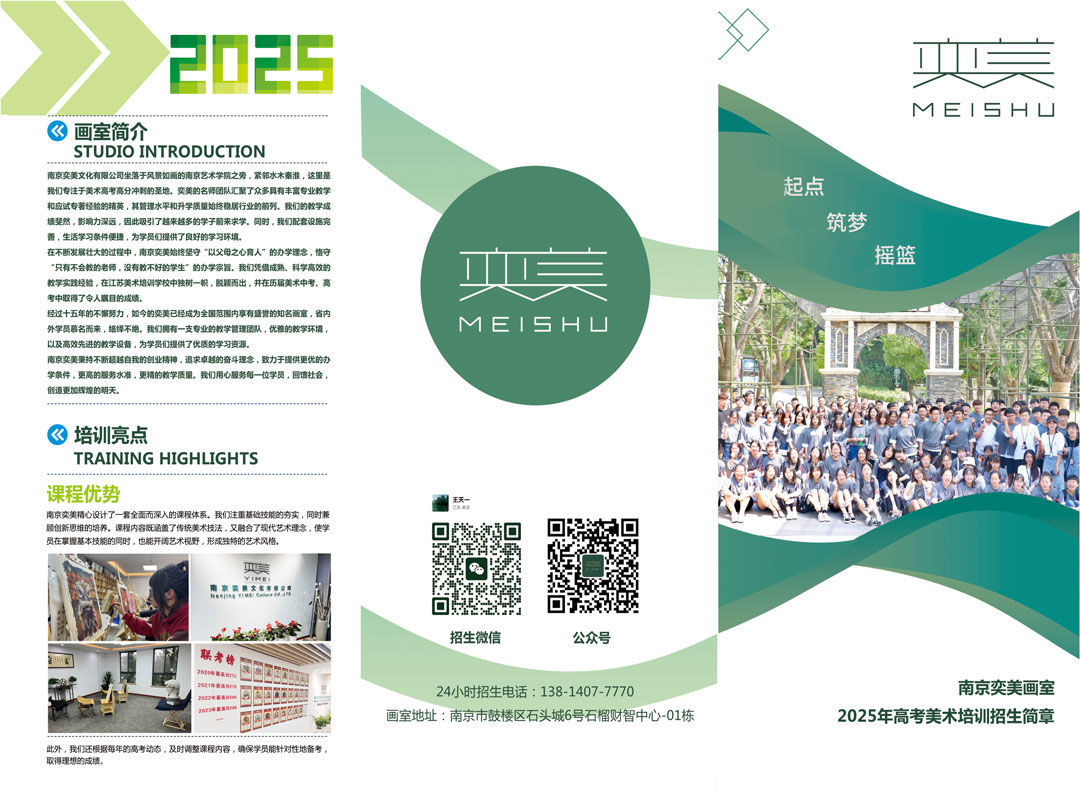 奕美画室堪称南京画室界的领军者,在“中国美术高考十大品牌机构”中占有一席之地。办学十年来,规模宏大,生源遍布各地。这里的教学团队堪称豪华,不仅实力强劲,而且教学管理科学规范。学校专门设立“美术高考教学研发中心”,拥有自主研发的教材和统一教学大纲,还与三十多所知名高校紧密合作,为学生的升学之路铺就坚实基石 。无论是基础素描、色彩,还是艺考冲刺培训,艺之行都能提供全方位、多层次的教学服务,满足不同学生的需求。