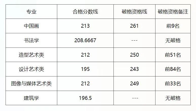 国美跟其他美院不同,它的破格录取非常苛刻,只有在录取人数没达到招生计划数的90%,并且排名位次在各大类招生计划数的前15%,才启用破格录取,这时文化成绩才能相应降低15%,根据它今年公布的破格线,今年获得破格录取的人数只有3.7%,这个比例远远低于其他美院的10%,破格录取难度真不是一般的大。